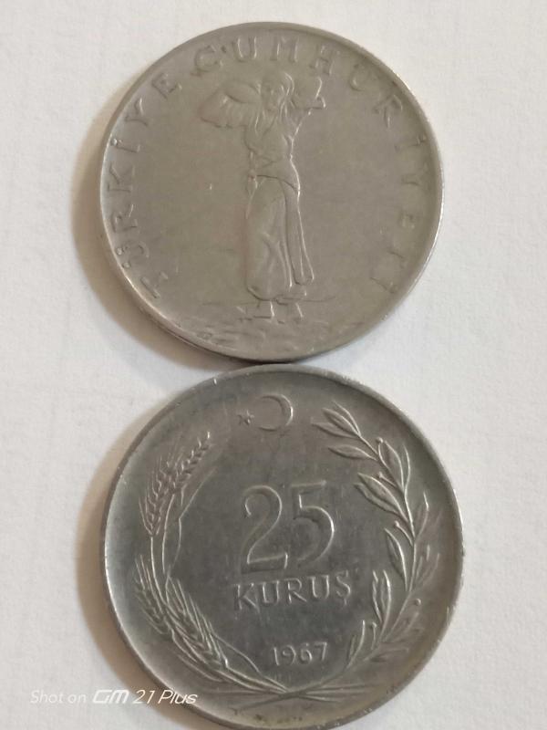 TÜRKİYE CUMHURİYETİ 25 KURUŞ 1967 ( TERS DÜZ TAKİM) ÇÇT, 1 yıl önce satışa sunulmuştur.