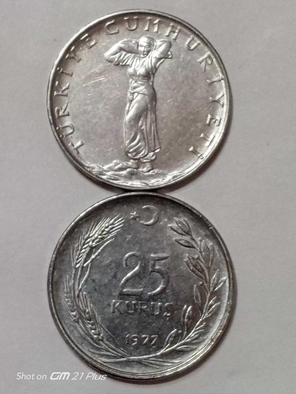 TÜRKİYE CUMHURİYETİ 25 KURUŞ 1977 ( TERS DÜZ TAKİM) ÇÇT, 9 ay önce satışa sunulmuştur.