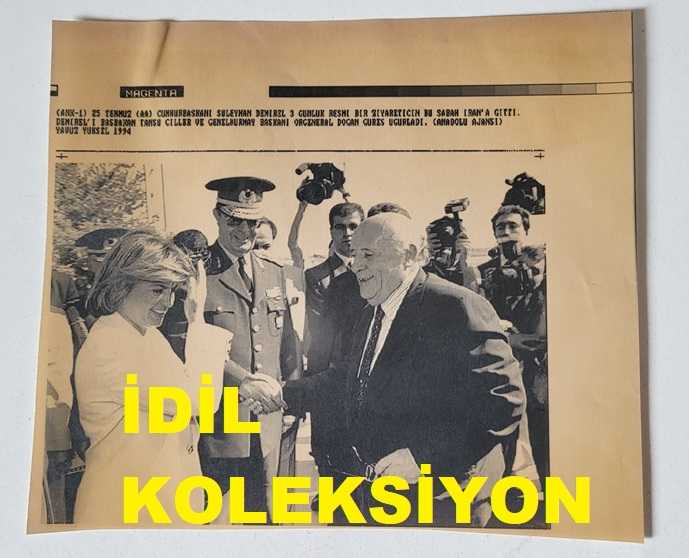 TÜRKİYE CUMHURİYETİ 9. CUMHURBAŞKANI SÜLEYMAN DEMİREL'İN AJANS-BASIN FOTOĞRAFI (KAĞIT BASKI) - 18 x 16 cm EBADINDA - SÜLEYMAN DEMİREL, İRAN ZİYARETİNE GİDERKEN KENDİSİNİ UĞURLAYAN BAŞBAKAN TANSU ÇİLLER ve GENELKURMAY BAŞKANI ORGENERAL DOĞAN GÜREŞ'LE AYNI KAREDE, 1994, 16 saat önce satışa sunulmuştur.