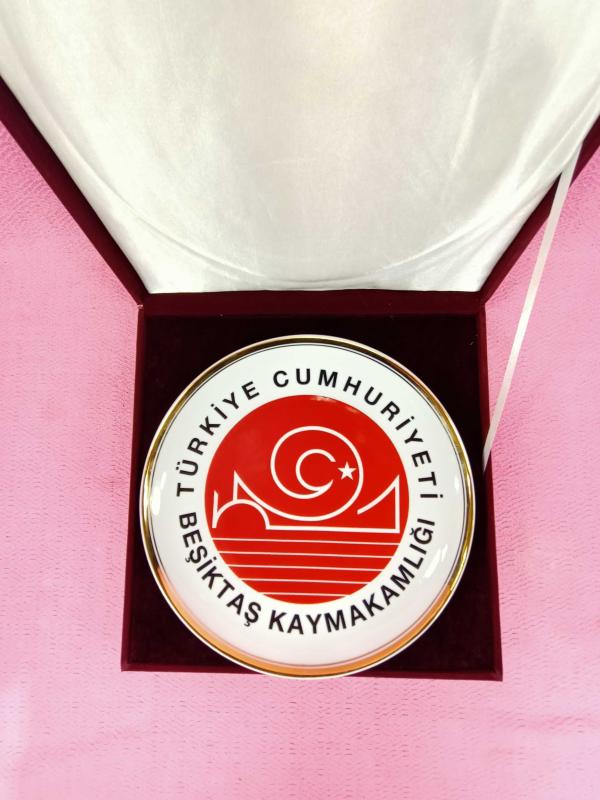 TÜRKİYE CUMHURİYETİ BEŞİKTAŞ KAYMAKAMLIĞI T.B.M.M. MİLLÎ SARAYLAR YILDIZ PORSELEN TABAK , BORDO RENKLİ ORJİNAL KADİFE KUTUSUNDA başlıklı antika/koleksiyon objesi Türkiye menşe’lidir. 2000 ve sonrası dönemine aittir.