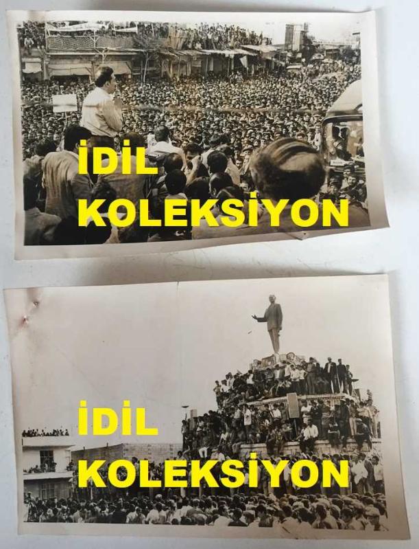 TÜRKİYE CUMHURİYETİ ESKİ BAŞBAKANI BÜLENT ECEVİT'İN ORİJİNAL 2'Lİ AJANS-BASIN FOTOĞRAFI SETİ - 18 x 12 cm EBADINDA - BÜLENT ECEVİT GÜNEY DOĞU GEZİSİNDE AYNI GÜN ŞANLIURFA ve MARDİN'DE MİTİNG DÜZENLEYİP HALKA KONUŞMA YAPARKEN ÇEKİLMİŞ 2 FARKLI KARE, 14 HAZİRAN 1975, 12 gün önce satışa sunulmuştur.