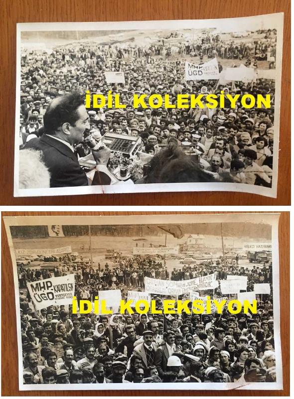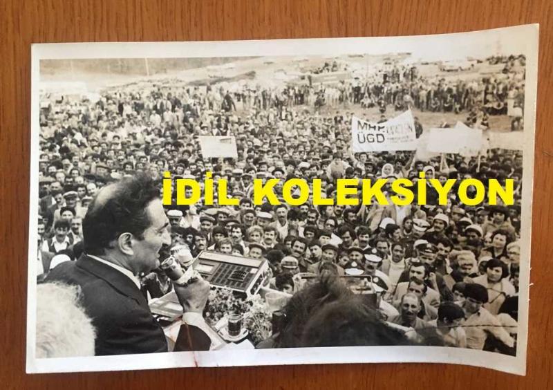 TÜRKİYE CUMHURİYETİ ESKİ BAŞBAKANI BÜLENT ECEVİT'İN ORİJİNAL 2'Lİ AJANS-BASIN FOTOĞRAFI SETİ - 18 x 12 cm EBADINDA - BÜLENT ECEVİT'İN DOĞU İLLERİNE YAPTIĞI GEZİLERDE DÜZENLEDİĞİ BİR MİTİNGDE HALKA KONUŞMA YAPARKEN ÇEKİLMİŞ 2 FARKLI KARE, 24 TEMMUZ 1979-“MHP, ÜGD KAPATILSIN”YURTSEVER D.GENÇLİK”Pankartlı miting., 12 gün önce satışa sunulmuştur.