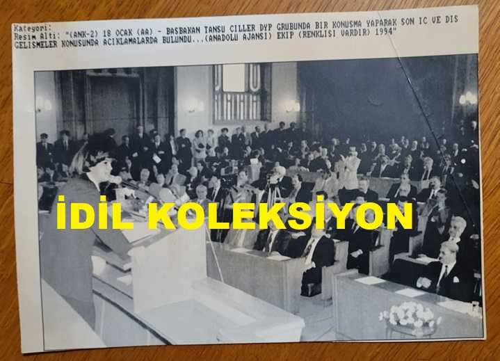 TÜRKİYE CUMHURİYETİ ESKİ BAŞBAKANI TANSU ÇİLLER'İN AJANS-BASIN FOTOĞRAFI (KAĞIT BASKI) - 19 x 14 cm EBADINDA - TANSU ÇİLLER, DYP GRUBUNDA KÜRSÜYE ÇIKIP KONUŞMA YAPARKEN ÇEKİLMİŞ BİR KARE. 1994, en son 27 gün önce güncellenmiştir.