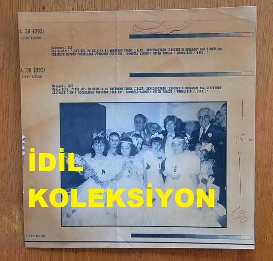 TÜRKİYE CUMHURİYETİ ESKİ BAŞBAKANI TANSU ÇİLLER'İN AJANS-BASIN FOTOĞRAFI (KAĞIT BASKI) - 22 x 21 cm EBADINDA - TANSU ÇİLLER, DENİZKÖŞKLER İLKÖĞRETİM OKULU ANA SINIFINDAKİ KIZ ÖĞRENCİLERLE TOPLUCA POZ VERİRKEN. 1993, dün satışa sunulmuştur.