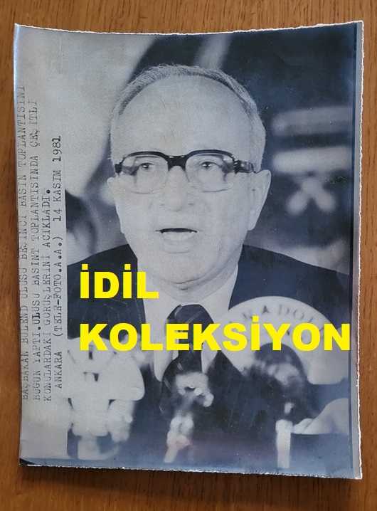 TÜRKİYE CUMHURİYETİ ESKİ BAŞBAKANI ve DENİZ KUVVETLERİ KOMUTANI ORAMİRAL SAİM BÜLENT ULUSU'NUN HABER METİNLİ AJANS-BASIN FOTOĞRAFI - 21 x 16 cm EBADINDA - BÜLENT ULUSU, DÜZENLEDİĞİ 5. BASIN TOPLANTISINDA KONUŞMA YAPARKEN ÇEKİLMİŞ BİR KARE başlıklı ürün, Efemera, Müzik, Sinema > Fotoğraflar > Diğer kategorisi altında İkinci El olarak satılmaktadır.