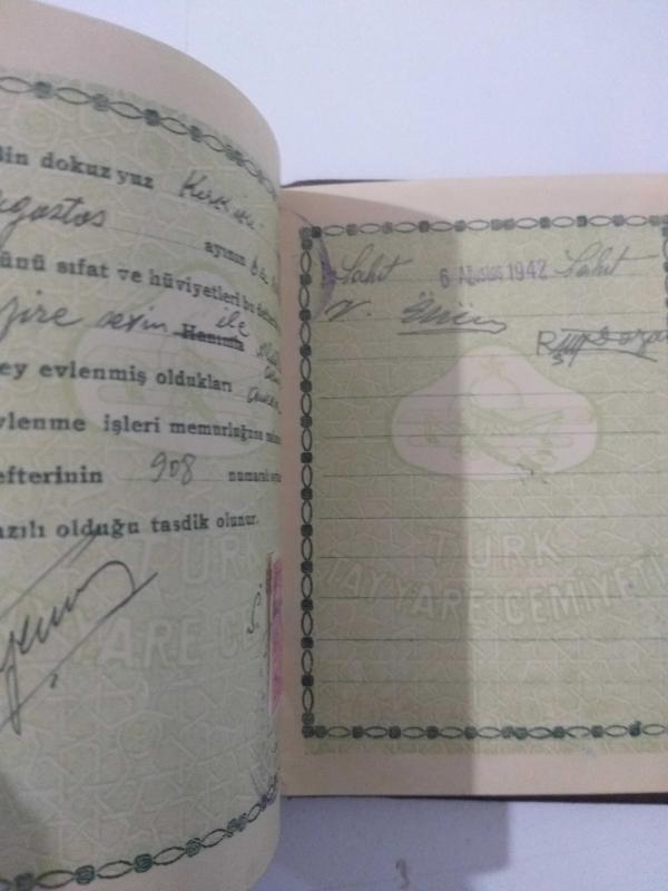 TÜRKİYE CUMHURİYETİ Evlenme Vekaleti EVLENME CÜZDANI - 1942 ( NAZİRE SERİN - ABDÜLKADİR OKUMAZ adlarına ait ), 4 gün önce satışa sunulmuştur.