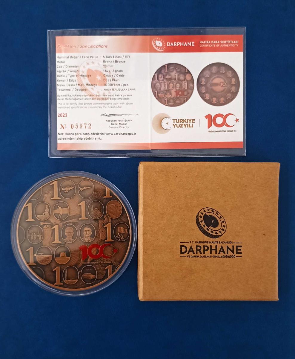 TÜRKİYE CUMHURİYETİ'NİN 100.YILI BRONZ HATIRA PARASI / SERTİFİKALI, en son 15 saat önce güncellenmiştir.