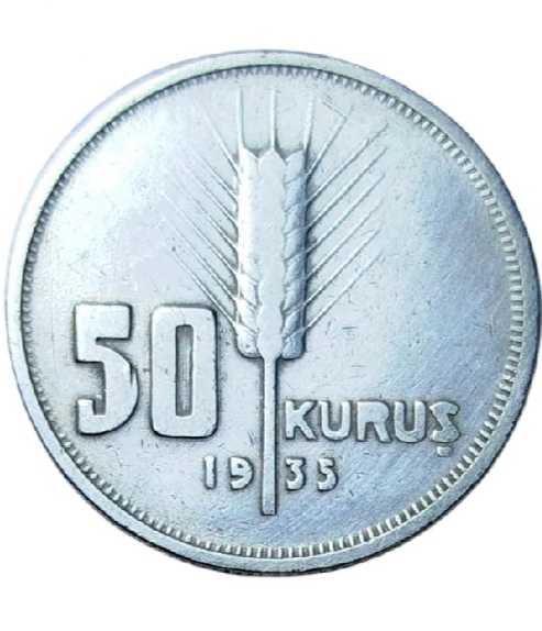 TÜRKİYE CUMHURİYETi 50 KURUŞ, 1935 GÜMÜŞ, Nadirlik: C 6 GR., 15 gün önce satışa sunulmuştur.