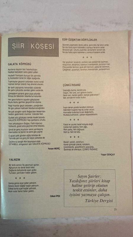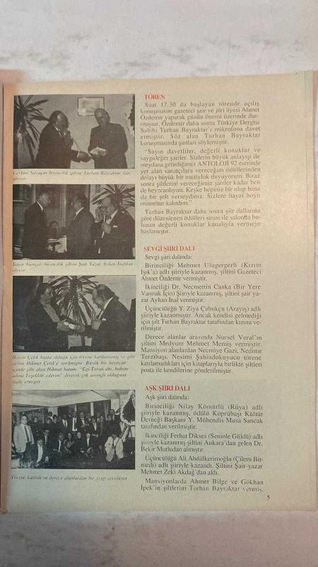 TÜRKİYE DERGİSİ - 19 MAYIS - TURHAN BAYRAKTAR - AHMET ÖZDEMİR - AYHAN İNAL - MEHMET ULUGERGERLİ - NECMETTİN CANKA - Y. ZİYA ÇUBUKÇU - NURSEL VERAL - MEHMET MEMİŞ - NILAY KÖMÜRLÜ - MUSA SANCAK - FERHAT DİKSES - BEKİR MUTLU - ALİ ABDÜLKERİMOĞLU - MEHMET ZEKİ AKDAĞ - AHMET BİLGE - GÖKHAN İPEK - RAŞİT KARA - VURAL AYDIN - AYTAÇ OY - RASİM SANCAK - SEMİHA İZSÜREN - CEMAL YILMAZ - NIHAN GÜNEY - CEMİL ÇİÇEK - EMİNE BORA KARABEKİROĞLU - ZEHRA Ö. YILMAZ - A. ÇETİN SÜRMEN - TÜRKAN BARANDIR - AYDINER AYDIN - NEZAHAT TEKEBAŞ - CEYHUN SAVAŞAN - MÜZEYYEN KESKİN - İSMAİL BAKIR - MUSTAFA KORKMA - YUSUF ZİYA ÇUBUKÇU - AŞIK UMMAN - A. RIDVAN KUŞÇU - FATMA GİRİK - ZUHAL SAYMAN - TUNÇALP - HÜSEYİN CEYLAN ANTOLOJİ 92 ŞİİR YARIŞMASI - 19 MAYIS GENÇLİK VE SPOR BAYRAMI KUTLAMALARI - ÖDÜL TÖRENİ - SEVGİ ŞİİRİ DALI - AŞK ŞİİRİ DALI - GÖNÜL ŞİİRİ DALI - DOĞA ŞİİRİ DALI - MANSİYON ÖDÜLLERİ - ŞİLT TÖRENİ - TÜRKİYE DERGİSİ VE BAYAJANS İŞBİRLİĞİ - İSTANBUL GAZETECİLER CEMİYETİ LOKALİ - - TAM TAKIM EKSİKSİZ 32 SAYFA adlı eser, Kitap > Süreli Yayınlar > Dergiler > Magazin, Moda kategorisinde İkinci El olarak satıştadır.