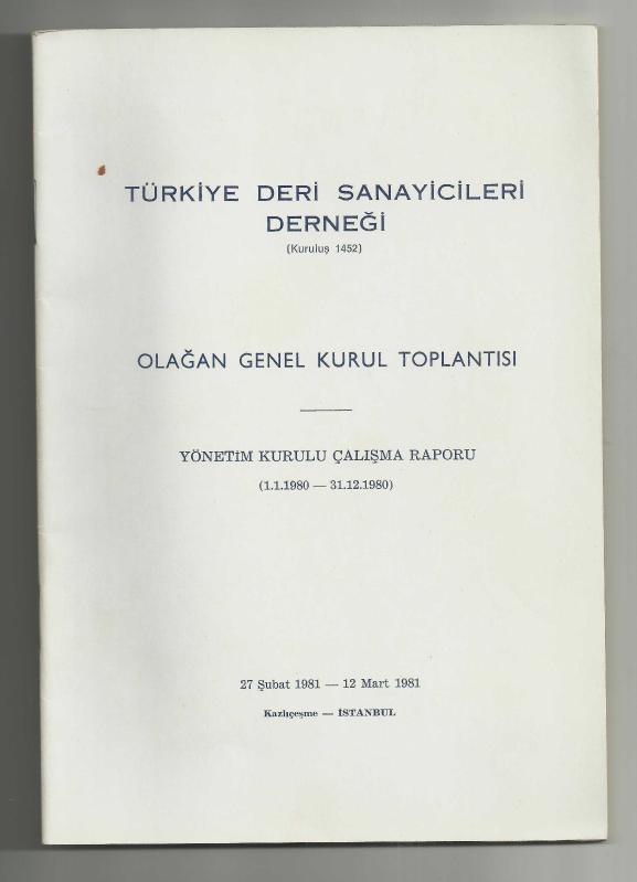 ** TÜRKİYE DERİ SANAYİCİLERİ DERNEĞİ / 1980 OLAĞAN GENEL KURUL TOPLANTISI ** 40 sayfa,çil durumda,yönetim kurulu çalışma raporu...