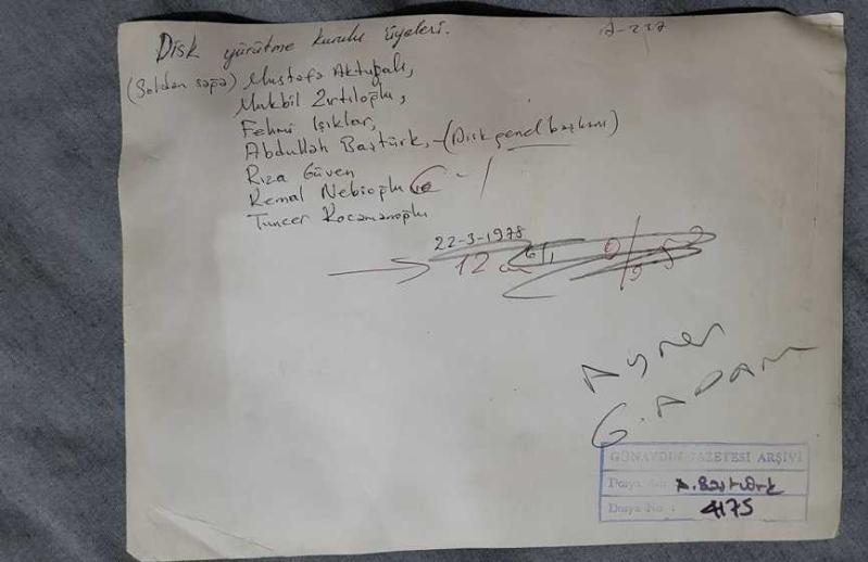 TÜRKİYE DEVRİMCİ İŞÇİ SENDİKALARI KONFEDERASYONU (DİSK) ESKİ GENEL BAŞKANLARINDAN SENDİKACI ABDULLAH BAŞTÜRK'ÜN ORİJİNAL BÜYÜK BOY FOTOĞRAFI - 24 x 18 cm EBADINDA - ABDULLAH BAŞTÜRK, DİSK YÖNETİM KURULU ÜYELERİ MUSTAFA AKTOLGALI, MUKBİL ZIRTILOĞLU, FEHMİ IŞIKLAR (GENEL SEKRETER), RIZA GÜVEN, KEMAL NEBİOĞLU ve TUNCER KOCAMANOĞLU İLE TOPLANTI HALİNDEYKEN ÇEKİLMİŞ BİR KARE... BÜYÜK BOY NET KALİTEDE BİR BASKI. ÖZEL ARŞİV. 22 MART 1978, bir ay önce satışa sunulmuştur.