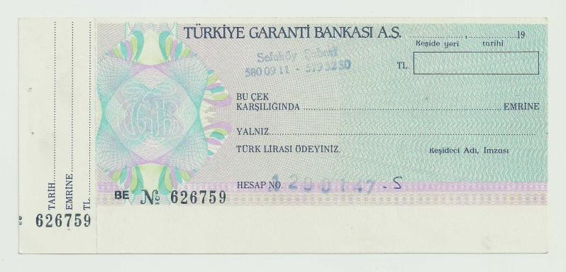 ** TÜRKİYE GARANTİ BANKASI A.Ş. SEFAKÖY ŞUBESİ TEDAVÜL DIŞI ÇEKİ ** Koleksiyonerler için süper temiz durumda,bir adet tedavül dışı eski çek yaprağıdır...