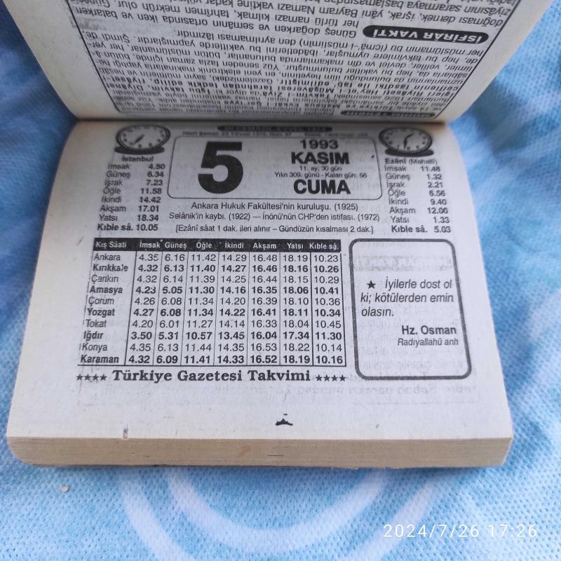 TÜRKİYE GAZETESİ TAKVİMİ 5 KASIM 1993 - DOĞUM GÜNÜ HEDİYESİ HEDİYELİK TAKVİM YAPRAĞI, en son 1 yıl önce güncellenmiştir.
