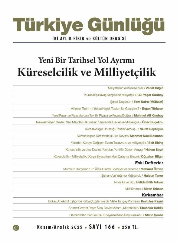 KASIM/ARALIK MEKTUBU Türkiye Günlüğü, 2025 Yılının son sayısıyla elinize ulaşmış bulunmaktadır. Kendi klasik çizgisinde sürdürülen yayıncılık anlayışıyla Türk dergicilik anlayışında özgün ve öncü bir yere sahiptir Türkiye Günlüğü., Dergiler dünyasında çok rastlanan, daha çok da akademik kurumların yayınladıkları dergiler arasında sık sık görülen, gelen yazıları bir araya getirip, toplama yazıların yer aldığı bir dergi olmanın ötesinde fikir dergisi olma iddiasını sürdürme konusunda kararlı tavrını devam ettirmektedir. Bunun içindir ki Türkiye’yi ve yaşadığımız coğrafyayı önceleyen ama bütün dünyanın meselelerine duyarlılık göstermek, her konuyu bir problematik içinde ele almak hassasiyetini titizlikle koruyarak, bir fikir ortaya koymak, çağımıza tanıklık etmek kadar yaşadığımız ülkeye ve meselelere karşı yeni görüşler, yeni yorumlar sunmak da bu derginin ilk günden bu yana kendine biçtiği sorumluluğun gereğidir. Dergimizin kurucu Genel Yayın Müdürü Mustafa Çalık’ı kaybetmemizin üzerinden iki yıl geçmiş bulunmaktadır; Dr. Çalık hem akademik çalışmalarında ortaya koyduklarıyla hem dergi çevresindeki çalışmalarında yazdıklarıyla, konuşmalarıyla aramızda yaşamaya devam etmektedir. Vefatından yaklaşık iki ay önce dergi yazıhanesinde dergimizin şimdiki Genel Yayın Müdürü Vedat Bilgin’e “Kardaş, biliyorum yayın dünyasındaki dergilerin hepsi bir gün dijital yayıncılık karşısında kaybedip dijitalleşmek zorunda kalacaklar ama bana bir şey olursa dijital karşısında pes edene kadar dergiyi devam ettirmeni ümit ediyorum, Türkiye Günlüğü’nü sana, Tuna Beye emanet bıraktığımı biliniz” şeklindeki vasiyet konuşmasını, o gün salonda bulunanların hepsi (Tuna Koç, Fetullah Akın, Vedat Erdem) üzüntüyle, hüzün içinde dinlerken; Vedat Bilgin “Mustafacım, sevgili kardeşim; bütün dergiler dijitale dönse de biz Türkiye Günlüğü’ nü seninle beraber matbu olarak yayınlamayı hep sürdüreceğiz, sen bir yere ayrılmıyorsun” şeklinde cevap vermişti. Maalesef ayrılık oldu fakat verilen söz hep tutulacak yerine getirilecektir. Allah rahmet eylesin. Mustafa Çalık, her yaşında genç ve gençlerin bu ülkenin derdiyle dertlenmesini, bu ülkenin nefesi olmasını önemseyen, onlarla iç içe yaşayan bir düşünce adamı olduğu gibi gençlerin Mustafa Ağabeyiydi. Bu anlayışla dergimiz her yıl Mustafa Çalık adına gençleri bir ödüle, bir armağanla buluşturmaya, yarışmaya davet etmeye karar vermiştir: ‘Mustafa Çalık; Genç Kalemler Araştırma, İnceleme, Makale Ödülü’ her yıl Dr. Çalık’ın vefat yıldönümünde jürinin seçtiği, belirlediği genç kalemlere takdim edilecektir. Ocak ayından itibaren başlayacak başvurularla ilgili ayrıntılar dergimizin internet sitesinde paylaşılacaktır. Değerli Türkiye Günlüğü dostları, dergimiz bu sayısında tarihin akışı içinde ortaya çıkan yeni bir yol ayrımını ele almaktadır. Küreselciler ve Milliyetçiler ayrımı herhangi bir kimsenin herhangi bir kanaatin ya da düşüncenin eseri değil, bugün yeryüzünde ortaya çıkan yeni bir olaya tekabül etmektedir. Küreselleşme Çağında Batı sisteminin merkezlerinde üretilen neo-liberal politikalarla başlayan sorunlar, küresel emperyalizmin sebep olduğu soygun ,sömürü, yoksulluk, insanların yerlerinden yurtlarından sürülmesi, vatansız bırakılması, savaş ve vahşet sahneleri bugün insanlık meselesi halini almıştır. İşte insanlığın yaşadığı bu dehşeti bu işkenceyi hazırlayan küreselleşme siyasetleri karşısında anti-emperyalist bir çıkış yolu olarak milliyetçilik durmaktadır. Elbette ki, sorunların büyüklüğü, çözümünün de kolay olmadığının hatırda tutulmasını gerekli kılmaktadır. Sanayi çağının başlamasıyla ortaya çıkan eski siyasal farklılaşmaların artık büyük bir erozyon yaşamakta olduğu görülmektedir. Avrupa’nın ünlü klasik sağ ve sol siyasetleri tarihlerinin en büyük krizini yaşadıkları bir dönemin içinden geçmektedirler. Bir çağın kapandığını gösteren birçok belirti vardır. Bu dönemi yansıtan, sağ veya sol siyasetler şeklindeki bölünmeler etrafındaki mücadelelerin güç kaybına uğraması veya etkisiz hale gelmesi, bugünkü dünyanın yaşadığı yeni sorunların ve bunlar etrafında ortaya çıkan çelişkilerin giderek artması, küreselciler ve milliyetçiler arasındaki farklılaşmaların yükseldiği bir dönemin başlarında bulunduğumuzu gösteriyor. Dergimizin bu sayısında, bu konular etrafında yeni fikir tartışmalarına temel olacak çok önemli yazarları ve yazıları bulacaksınız. Yazılarını özlediğimiz Dr. Ali Yaşar Sarıbay hocamızın bu konuya katkı niteliğindeki yazısı, Dr. Ergün Türkcan’ın derinlikli analizleri; Dr. M. Ali Kılıçbay’ın her zaman ki alışılmış ötesi meseleye bakışı mutlaka dikkatinizi celbedecektir. Dr. M. Beyazyüz’ün bu sayıda aramızda görülmesi sevindiricidir. Dr.M. Özden, Eski Defterlerinin, klasik ağırlığıyla dergideki yerini almış bulunmaktadır. Kıymetli yazarlarımız, sevgili Türkiye Günlüğü dostları gelecek sayımızda bir insanlık problemi halini almış olan Siyonizm konusunu bütün boyutlarıyla ele alacağımızı dikkatlerinize sunuyoruz.