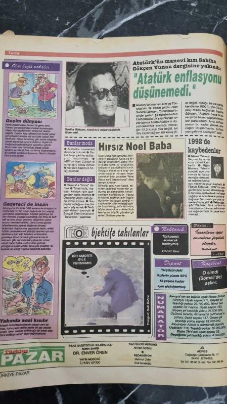 TÜRKİYE PAZAR GAZETESİ - 27 ARALIK 1992 - ATATÜRK' ÜN MANEVİ KIZI SABİHA GÖKÇEN YUNAN DERGİSİNE YAKINDI " ATATÜRK ENFLASYONU DÜŞÜNEMEDİ " - KANLI NOEL GELİYOR , HİNDİLER STRES İÇİNDE - AHMET GÜMÜŞEL , MURRALAR AFFETMEZ - DÜNÜRLER DÖKÜLDÜ , SADRİ ALIŞIK BRONŞİTTEN HASTANEDE YATARKEN DÜNÜRÜ COŞKUN TURNAGÖL ESRARYAKALATTI - GÜLER ERKAN , CEKET DÜĞMESİ BU KADAR ÖNEMLİMİ - EMİN ARVAS AYDIN ARVAS , İNSANLIK ADINA YÜZ KIZARTICI BİR YIL 1992 - BABA HAYDAR EFENDİ - ÜMİT İSMAİLOĞLU , KAVUNLARA NE OLDU - FAS'TA EVLİLİK PAZARI - ÇENGEL BULMACA - FARUK GEÇ SEVGİMİZ ÖLECEKMİ - KÜTAHYADA SAKLI SIR - BAŞIMIZA UYDU YAĞACAK adlı eser Türkçe dilindedir.