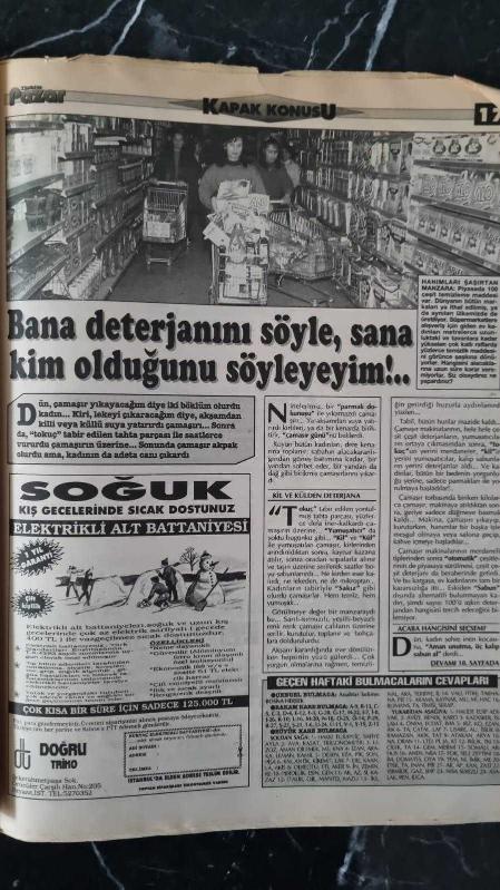 TÜRKİYE PAZAR GAZETESİ - 31 OCAK 1993 - AYDAN ŞENER , UTANGAÇ BİR İNSANINM - SABIR TİMSALİ ÜMMÜ SÜLEYM , CEM AKYOLDAŞ - PROF. DR. İSMET MİROĞLU , OSMAN GAZİ ' NİN OĞLI ORHAN BEY 'E VASİYETİ , "BÜTÜN HALKA EŞİT MUAMELE ET , ADİL OL". - FAHRİ TABEY , ÜNLÜ DOLANDIRICI SÜLÜN OSMAN ' A YALVARIYORDU - MENGENLİ YAHYA USTA - MİZAH - CEM AKYOLDAŞ , VİTRİNDE NELER VAR - GÜLER ERKAN , BEŞ AYDA OKUL OLUR MU - BANA DETERJAN 'INI SÖYLE SANA KİM OLDUĞUNU SÖYLEYEYİM - ÇENGEL BULMACA - BİZİM SOKAK - DURİGHT COLİNS İN DENİZ BİSİKLETİYLE AVRUPA SEYEHATİ ... adlı eser Türkçe dilindedir.