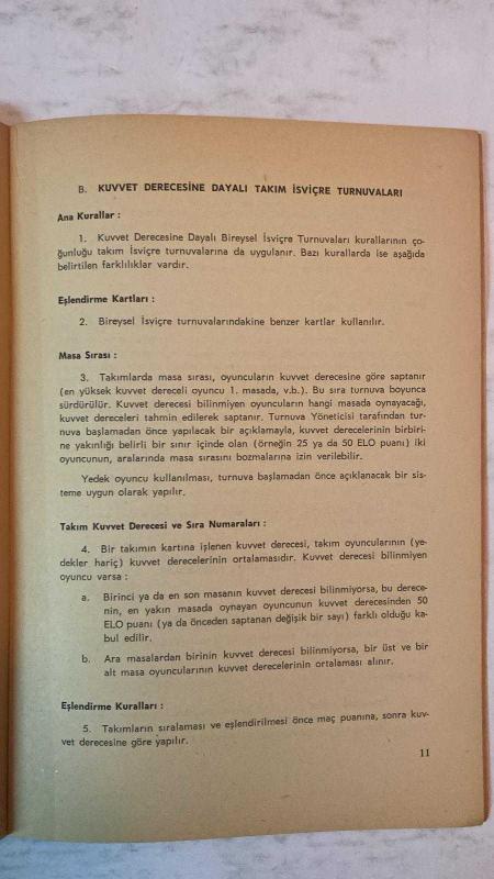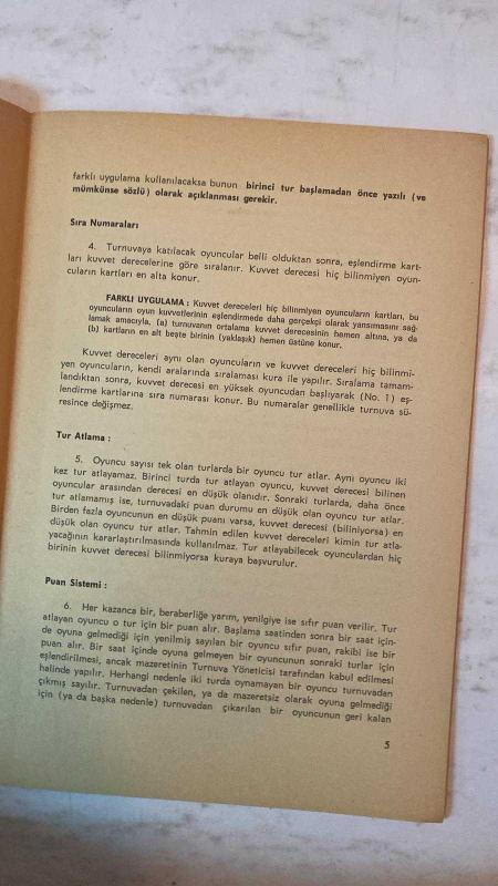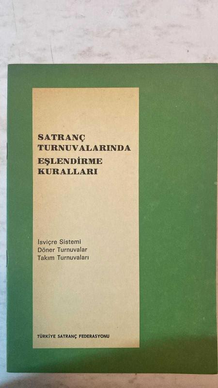 TÜRKİYE SATRANÇ FEDERASYONU DERGİSİ - SATRANÇ TURNUVALARINDA EŞLENDİRME KURALLARI TÜRKİYE SATRANÇ FEDERASYONU İSVİÇRE SİSTEMİ - DÖNER TURNUVALAR - TAKIM TURNUVALARI - KUVVET DERECESİNE DAYALI BİREYSEL TURNUVALAR - SIRA NUMARALARI - TUR ATLAMA KURALI - PUAN SİSTEMİ - TAMAMLANMAMIŞ OYUNLAR - ANA EŞLENDİRME KURALLARI - BİRİNCİ TURDA EŞLENDİRME - SONRAKİ TURLARDA EŞLENDİRME - AÇIKTA KALAN OYUNCUNUN EŞLENDİRİLMESİ - RENK TAYİNİ KURALLARI - FARKLI UYGULAMALAR VE İSTİSNALAR - TAM TAKIM EKSİKSİZ 40 SAYFA, ÜMİT ÜNKAN tarafından kaleme alınmıştır. Eser TURGAY HANEDAN editörlüğünde hazırlanmıştır. Kitap . tarafından yayınlanmıştır. 40 sayfadır. TÜRKİYE SATRANÇ FEDERASYONU DERGİSİ - SATRANÇ TURNUVALARINDA EŞLENDİRME KURALLARI TÜRKİYE SATRANÇ FEDERASYONU İSVİÇRE SİSTEMİ - DÖNER TURNUVALAR - TAKIM TURNUVALARI - KUVVET DERECESİNE DAYALI BİREYSEL TURNUVALAR - SIRA NUMARALARI - TUR ATLAMA KURALI - PUAN SİSTEMİ - TAMAMLANMAMIŞ OYUNLAR - ANA EŞLENDİRME KURALLARI - BİRİNCİ TURDA EŞLENDİRME - SONRAKİ TURLARDA EŞLENDİRME - AÇIKTA KALAN OYUNCUNUN EŞLENDİRİLMESİ - RENK TAYİNİ KURALLARI - FARKLI UYGULAMALAR VE İSTİSNALAR - TAM TAKIM EKSİKSİZ 40 SAYFA adlı eser Türkçe dilindedir.