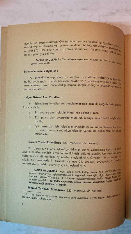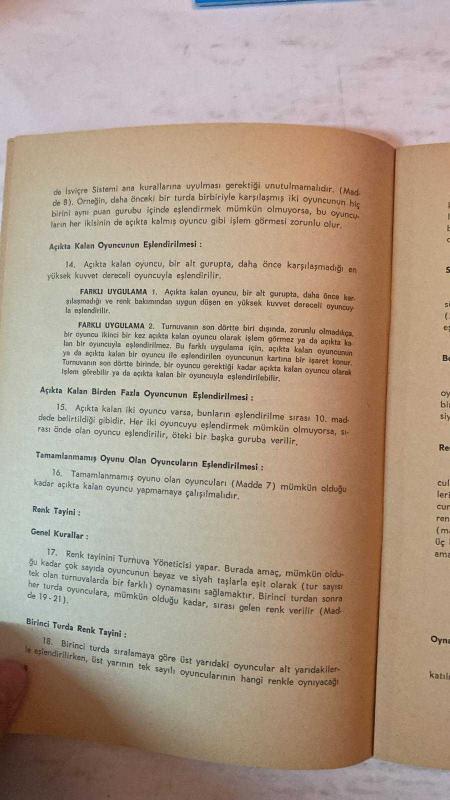 TÜRKİYE SATRANÇ FEDERASYONU DERGİSİ - SATRANÇ TURNUVALARINDA EŞLENDİRME KURALLARI TÜRKİYE SATRANÇ FEDERASYONU İSVİÇRE SİSTEMİ - DÖNER TURNUVALAR - TAKIM TURNUVALARI - KUVVET DERECESİNE DAYALI BİREYSEL TURNUVALAR - SIRA NUMARALARI - TUR ATLAMA KURALI - PUAN SİSTEMİ - TAMAMLANMAMIŞ OYUNLAR - ANA EŞLENDİRME KURALLARI - BİRİNCİ TURDA EŞLENDİRME - SONRAKİ TURLARDA EŞLENDİRME - AÇIKTA KALAN OYUNCUNUN EŞLENDİRİLMESİ - RENK TAYİNİ KURALLARI - FARKLI UYGULAMALAR VE İSTİSNALAR - TAM TAKIM EKSİKSİZ 40 SAYFA adlı eser, Kitap > Süreli Yayınlar > Dergiler > Magazin, Moda kategorisinde İkinci El olarak satıştadır.