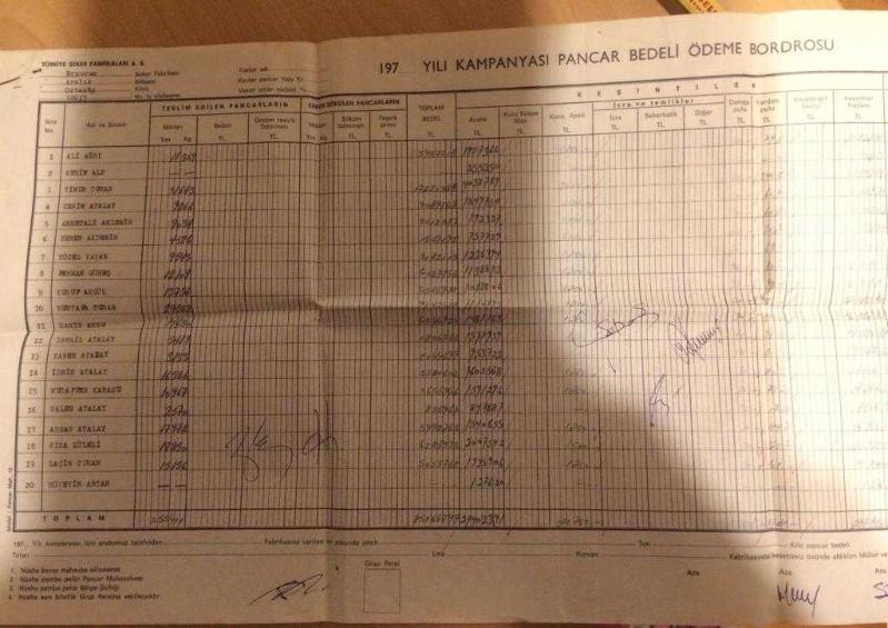TÜRKİYE ŞEKER FABRİKALARI A.Ş. ERZURUM, ARALIK BÖLGESİ ORTAKÖY KÖYÜ 30 KİŞİNİN ALIM BORDROSU 1980Lİ YILLAR, 1 yıl önce satışa sunulmuştur.