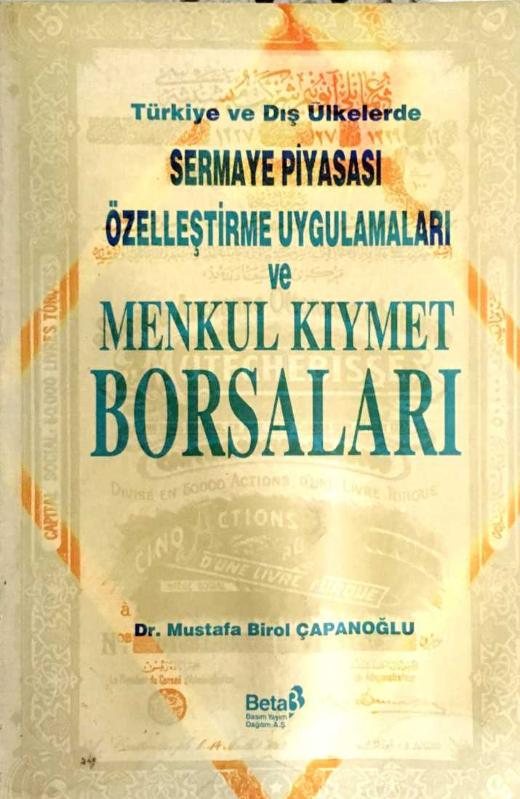 TÜRKİYE VE DIŞ ÜLKELERDE SERMAYE PİYASASI ÖZELLEŞTİRME UYGULAMALARI VE MENKUL KIYMET BORSALARI, DR.MUSTAFA BİROL ÇAPANOĞLU tarafından kaleme alınmıştır. Kitap 1993 yılında BETA BASIM YAYIM DAĞITIM tarafından 9754862826 ISBN kodu ile yayınlanmıştır. 223 sayfadır. TÜRKİYE VE DIŞ ÜLKELERDE SERMAYE PİYASASI ÖZELLEŞTİRME UYGULAMALARI VE MENKUL KIYMET BORSALARI adlı eser Türkçe dilindedir.