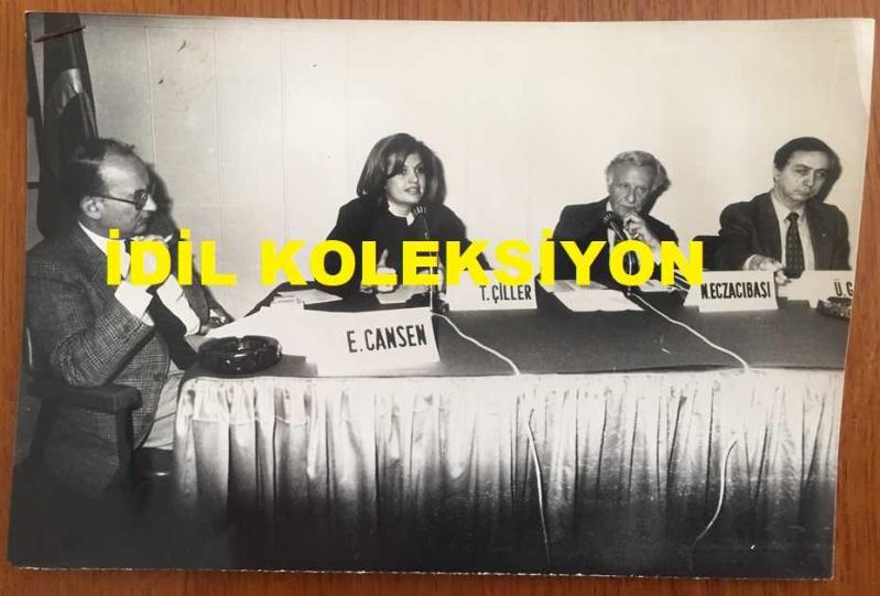 TÜRKİYE'DE İLAÇ SANAYİSİNİN KURUCULARINDAN MEHMET NEJAT FERİT ECZACIBAŞI'NIN ORİJİNAL FOTOĞRAFI - 18 x 12 cm EBADINDA - NEJAT ECZACIBAŞI, TANSU ÇİLLER, ÜZEYİR GARİH ve EGE CANSEN BİR SEMİNERDE KONUŞMA YAPARLARKEN ÇEKİLMİŞ BİR KARE başlıklı ürün, Efemera, Müzik, Sinema > Fotoğraflar > Diğer kategorisi altında İkinci El olarak satılmaktadır.