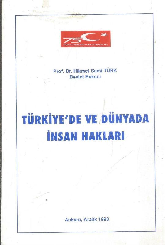 TÜRKİYE'DE VE DÜNYADA İNSAN HAKLARI, PROF. DR. HİKMET SAMİ TÜRK DEVLET BAKANI tarafından kaleme alınmıştır. Eser İNSAN HAKLARI KOORDİNATÖR ÜST KURULU editörlüğünde hazırlanmıştır. Kitap 1998 yılında İNSAN HAKLARI KOORDİNATÖRÜ YAYINLARI tarafından [ANKARA] yayınlanmıştır. 303 sayfadır. TÜRKİYE'DE VE DÜNYADA İNSAN HAKLARI adlı eser Türkçe dilindedir.