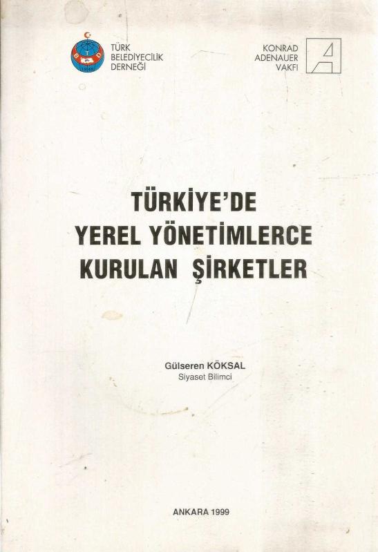 TÜRKİYE'DE YEREL YÖNETİMLERCE KURULAN ŞİRKETLER, GÜLSEREN KÖKSAL tarafından kaleme alınmıştır. Kitap 1999 yılında Türk Belediyecilik Derneği - Konrad Aden tarafından [ANKARA] yayınlanmıştır. 76 sayfadır. TÜRKİYE'DE YEREL YÖNETİMLERCE KURULAN ŞİRKETLER adlı eser Türkçe dilindedir.