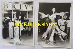 TÜRKİYE'NİN İLK TRANS DANSÖZÜ ALEV TAMARA'NIN (VELİ YAVUZ) ORİJİNAL 2'Lİ BÜYÜK BOY FOTOĞRAF SETİ - 24 x 18 cm EBADINDA - ALEV TAMARA, ORYANTAL KOSTÜMÜYLE DANS EDERKEN ÇEKİLMİŞ 2 FARKLI KARE