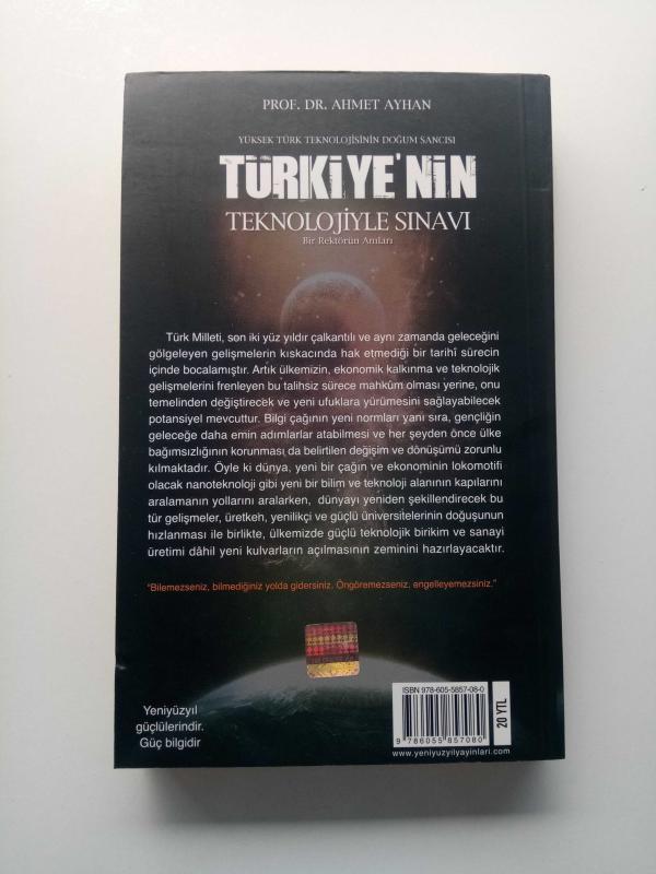 TÜRKİYE'NİN TEKNOLOJİYLE SINAVI / BİR REKTÖRÜN ANILARI (2.EL), PROF. DR. AHMET AYHAN tarafından kaleme alınmıştır. Eser GAYE YAVUZCAN, RAMAZAN KIZILKAYA editörlüğünde hazırlanmıştır. Kitap 2008 yılında YENİ YÜZYIL YAYINLARI tarafından [ İSTANBUL] 978-605-5857-08-0 ISBN kodu ile yayınlanmıştır. Satışta olan kitap, yayınevinin 1. baskısıdır. 352 sayfadır. Sayfa bilgisi 2. HAMUR olarak belirtilmiştir. TÜRKİYE'NİN TEKNOLOJİYLE SINAVI / BİR REKTÖRÜN ANILARI (2.EL) adlı eser Türkçe dilindedir.