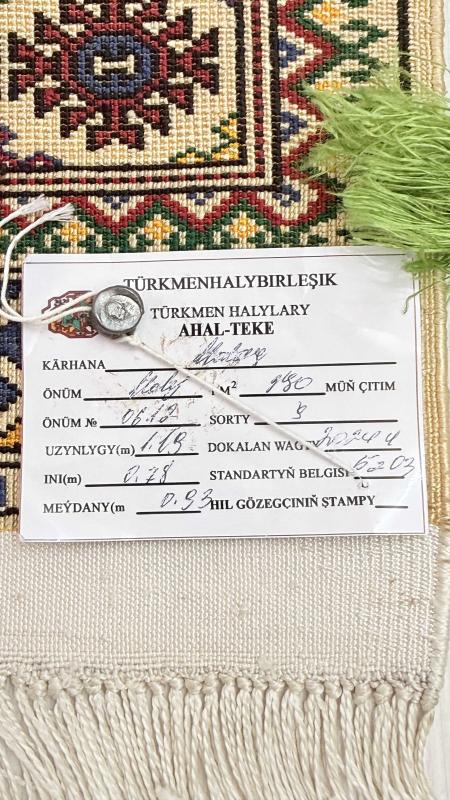 TÜRKMEN BİRLİĞİ HALILARI AKHAL İPEK başlıklı antika/koleksiyon objesi Asya menşe’lidir. 1920-1940 arası dönemine aittir.