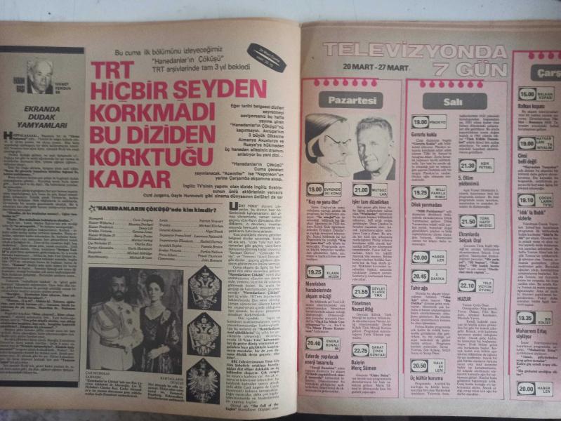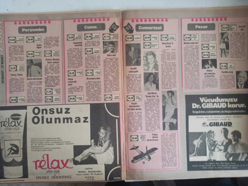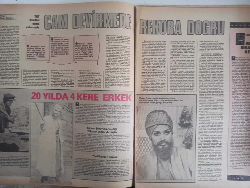 TV'DE 7 Gün Haftalık Aktüalite Sinema Tiyatro Müzik ve Magazin Dergisi - 20 Mart 1978 - Ekranın Yeni Kralı Jett - Nilüfer - Joseph Armagh - Jan Michael Vincent - Çam Devirmede Rekora Doğru - 20 Yılda 4 ere Erkek - Türkan Şoray- Hikmet Feridun Es - TRT Hiçbir Şeyden Korkmadı Bu Diziden Korktuğu Kadar - Charles Kay - Sezai Solelli - İnsanlardan Nefret Ediyor - Sonu Olmayan Yol - Bunlar da Bizim ''Korkusuzlar'' - Aylin Urgal - Anten Falı - Enis Fosforoğlu - A'dan Z'ye Yazarlar Sendikası'nı Ayağa Kaldıran Hata - Parizien Çorap Reklamı - Dekora Perde Reklamı fotoğraf ve haberi - Dergi Tam Değildir Sadece 16 Sayfası Mevcuttur Yıpranma, sararmalar, kupon kesiği ve yırtılmalar zamana bağlı olarak görülebilir