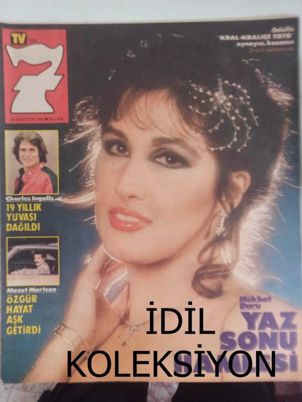 TV'DE 7 Gün Haftalık Aktüalite Sinema Tiyatro Müzik ve Magazin Dergisi - 24 Ağustos 1981 - Nükhet Duru - Kral ve Kraliçe Olmaya Adam 38 Genç - ''Beni Hatırlayınız''ın Başına Gelenler - Mesut Mertcan - Sahne Hayat Onu Baştan Çıkardı - Midhat Sertoğlu - Bülent Uluslu - Halit Kıvanç - Assolistlik Yolunda İlk Adım - Ayşe Egesoy ve objektifle gelen ambargo - Hikmet Feridun Es - İbrahim Tatlıses - Kibariye - Samime Sanay'dan korkmak gerek - Ekran Kimden Yana ? - 2 Kişinin Eseridir - Kamil Sönmez - Hasret Bitti - Lucy'nin 21. Yaşgünü Partisinde - J.R. Yoktu - Bayan Ellie Gibi Kadın - Selçuk Ural - Seyhan Tütün - Mithat Körler - Ahmet Melik - Mikrofon başından, Ocak Başına - Erkandaki Kaptan Şarkıcı - Ginger Rogers - Bülent Özveren - Tele Program - Küçük Ev'de Mutsuzluk Rüzgarları -Pamukbank Reklamı fotoğraf ve haberi - Tam Takım Dergi Yıpranma, sararmalar, kupon kesiği ve yırtılmalar zamana bağlı olarak görülebilir