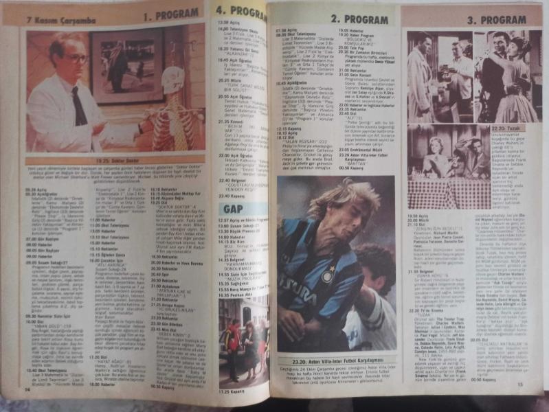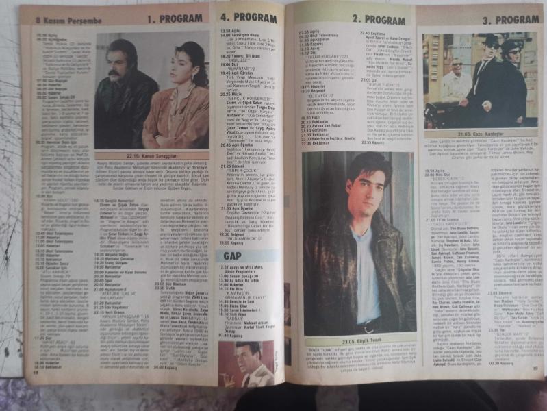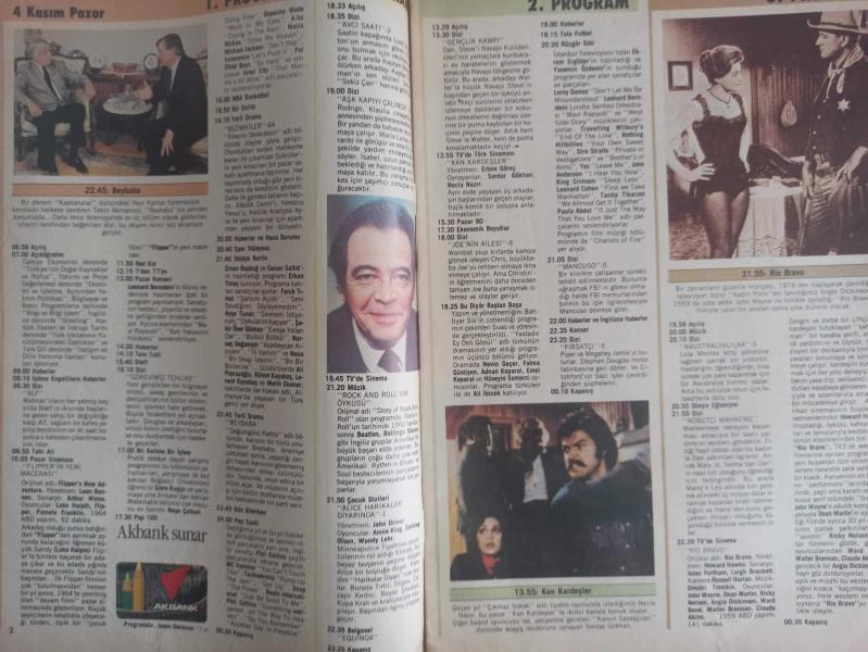 TV'de 7 Gün Gong Tv Program Dergisi - 4-11 Kasım - Alcanzar Filmi - Eduardo Capatillo - Beybaba - Tekin Akmansoy Nuri Kantar - Kan Kardeşler - Necla Nazır - Serdar Gökhan - Rio Bravo Filmi - Angie Dickinson - John Wayne - Müzik Yelpazesi Filmi - Sezen Cumhur Önal - Janet Jackson - Sazının Ustaları - Cemile Kutgün - İzzet Altın - Selahattin Erköse - Murat Erköse - Kıymet Erköse - Hollywood Yıldızları - Meryl streep - Kamçılı Adam - Steven Spielberg - Festivallerden - Bebek Kimin - Bruce Weits - Robin Star Resser - Anne Jackson - Michael Stratford - Tuzak Filmi - Charles Walters - Frank Sinatra - Debbie Reynolds - Kanun Savaşçıları - Gülben Ergen - Serdar Gökhan - Büyük Tuzak Filmi - Ken Wahl - Ray Charles - James Brown - Dan Aykrod- Cazcı Kardeşler filmi - Yalan Rüzgarı dizisi - Tracey Bregman - Doug Davidson - Savaş filosu filmi - Robert Stack - Edmond O'Brien fotoğraf ve haberi - Tam Takım Dergi Yıpranma, sararmalar, kupon kesiği ve yırtılmalar zamana bağlı olarak görülebilir