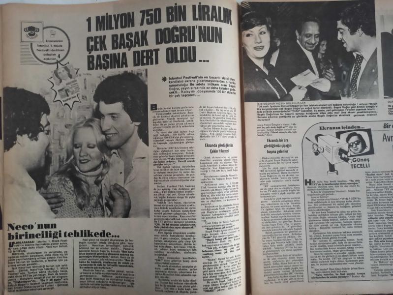 TV'de 7 Gün Haftalık Aktüalite Sinema Tiyatro Müzik ve Magazin Dergisi - 13 Aralık 1976 - Sayı:51 - İstanbul Festivali - Olmaz olsun böyle festival - Nilüfer - Türkiye'yi temsil edecek sanatçılar önceden biliniyor muydu? - Bu yalana ne gerek vardı? - Tahsin Öztin - Giray Elmalı - Festivaller geçidi - Neco'nun birinciliği tehlikede - Güneş Tecelli - Tanju Okan olayı - ''Bir an başımdan aşağı kaynar sular döküldü sandım'' - Timur Selçuk - Özdemir Erdoğan - Füsun Önal - Ayten Alpman - Sonsöz sanatçıların - Kaynanalarda 3 kayıp var! - Şaban Karataş - Bizim Sınıf - Şenay düdek - Yıldız Kenter ve Cüneyt Gökçer - Görevimiz Tehlike Posteri - Peter Lopus - Peter Graves - Barbara Bain - Martin Landau - Gregg Morris - Metin Ersoy - Erkut Taçkın - Orhan Ünal - Halit Kıvanç - Rüçhan Çamay kadın haklarını böyle savunacak - Şakir Öner Günhan'ın gizli dünyası - Bir Zamanlar Bir Susan Hayward Vardı - Fecri Ebcioğlu - Gray Grant - Ali Kuşçu - Müjde Ar Posterli Tam Takım Dergi adlı eser, Kitap > Süreli Yayınlar > Dergiler > Magazin, Moda kategorisinde İkinci El olarak satıştadır.
