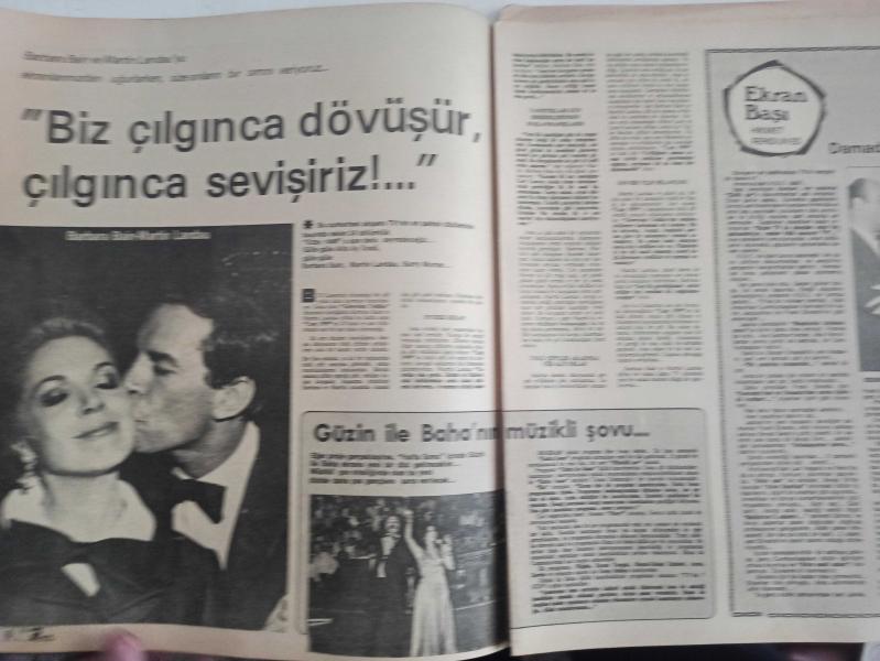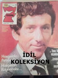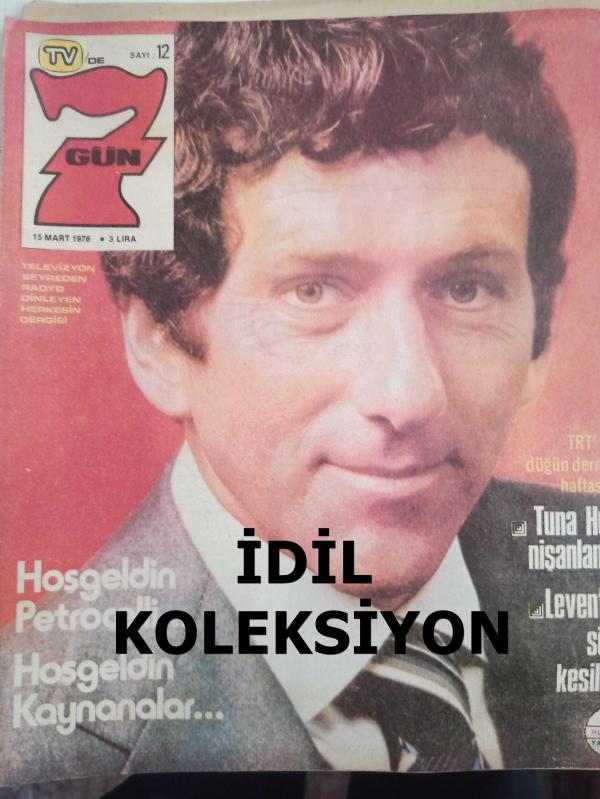 TV'de 7 Gün Haftalık Aktüalite Sinema Tiyatro Müzik ve Magazin Dergisi - 15 Mart 1976 - Sayı:12 Hoşgeldin Petroçelli - Tuna Huş Nişanlandı - Televizyondaki Politika ve Politikacılara Dair - Şair Yasemin'den mısralar - Barbara Bain - Martin Landau - Hikmet Feridun Es - Damadı iyi tanırım - Barış Manço'dan bir mektup var - İlk hava raporu ilk trafik konuşması ilk boks maçı - Nilgün Atılgan - Nilgün Bayram - Mustafa Yolaşan - Cemile Kutgün - Emin Şaylan - Nisa Serezli - Barış Manço - Ajda Pekkan - Nevra Serezli - Marlene Dietrich - Muazzez Abacı Posteri - Kaynanalar'la bundan 2 yıl önce tanışmıştık - Levent Kırca'ya söz kestiler - Enis Fosforoğlu - Gençlik Kulübü - Tamer Durukan'a ne sormak istiyorsunuz? - Emin Şaylan - Aytaç Yörükaslan - Hikmet Feridun Es - Roger Moore - Siz Hiç Tramvay sattılar mı ? - Hasan Mutlucan - Serbülent Yasun - Söz Tülay'ın - Teen Club Reklamı fotoğraf ve haberi - Posterli Tam Takım Dergi Yıpranma, sararmalar, kupon kesiği ve yırtılmalar zamana bağlı olarak görülebilir
