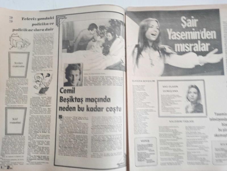 TV'de 7 Gün Haftalık Aktüalite Sinema Tiyatro Müzik ve Magazin Dergisi - 15 Mart 1976 - Sayı:12 Hoşgeldin Petroçelli - Tuna Huş Nişanlandı - Televizyondaki Politika ve Politikacılara Dair - Şair Yasemin'den mısralar - Barbara Bain - Martin Landau - Hikmet Feridun Es - Damadı iyi tanırım - Barış Manço'dan bir mektup var - İlk hava raporu ilk trafik konuşması ilk boks maçı - Nilgün Atılgan - Nilgün Bayram - Mustafa Yolaşan - Cemile Kutgün - Emin Şaylan - Nisa Serezli - Barış Manço - Ajda Pekkan - Nevra Serezli - Marlene Dietrich - Muazzez Abacı Posteri - Kaynanalar'la bundan 2 yıl önce tanışmıştık - Levent Kırca'ya söz kestiler - Enis Fosforoğlu - Gençlik Kulübü - Tamer Durukan'a ne sormak istiyorsunuz? - Emin Şaylan - Aytaç Yörükaslan - Hikmet Feridun Es - Roger Moore - Siz Hiç Tramvay sattılar mı ? - Hasan Mutlucan - Serbülent Yasun - Söz Tülay'ın - Teen Club Reklamı fotoğraf ve haberi - Posterli Tam Takım Dergi adlı eser, Kitap > Süreli Yayınlar > Dergiler > Magazin, Moda kategorisinde İkinci El olarak satıştadır.