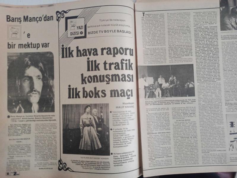 TV'de 7 Gün Haftalık Aktüalite Sinema Tiyatro Müzik ve Magazin Dergisi - 15 Mart 1976 - Sayı:12 Hoşgeldin Petroçelli - Tuna Huş Nişanlandı - Televizyondaki Politika ve Politikacılara Dair - Şair Yasemin'den mısralar - Barbara Bain - Martin Landau - Hikmet Feridun Es - Damadı iyi tanırım - Barış Manço'dan bir mektup var - İlk hava raporu ilk trafik konuşması ilk boks maçı - Nilgün Atılgan - Nilgün Bayram - Mustafa Yolaşan - Cemile Kutgün - Emin Şaylan - Nisa Serezli - Barış Manço - Ajda Pekkan - Nevra Serezli - Marlene Dietrich - Muazzez Abacı Posteri - Kaynanalar'la bundan 2 yıl önce tanışmıştık - Levent Kırca'ya söz kestiler - Enis Fosforoğlu - Gençlik Kulübü - Tamer Durukan'a ne sormak istiyorsunuz? - Emin Şaylan - Aytaç Yörükaslan - Hikmet Feridun Es - Roger Moore - Siz Hiç Tramvay sattılar mı ? - Hasan Mutlucan - Serbülent Yasun - Söz Tülay'ın - Teen Club Reklamı fotoğraf ve haberi - Posterli Tam Takım Dergi, Erol Simavi tarafından kaleme alınmıştır. Kitap 1976 yılında Hürriyet Gazetesi tarafından [İstanbul] yayınlanmıştır. 44 sayfadır. TV'de 7 Gün Haftalık Aktüalite Sinema Tiyatro Müzik ve Magazin Dergisi - 15 Mart 1976 - Sayı:12 Hoşgeldin Petroçelli - Tuna Huş Nişanlandı - Televizyondaki Politika ve Politikacılara Dair - Şair Yasemin'den mısralar - Barbara Bain - Martin Landau - Hikmet Feridun Es - Damadı iyi tanırım - Barış Manço'dan bir mektup var - İlk hava raporu ilk trafik konuşması ilk boks maçı - Nilgün Atılgan - Nilgün Bayram - Mustafa Yolaşan - Cemile Kutgün - Emin Şaylan - Nisa Serezli - Barış Manço - Ajda Pekkan - Nevra Serezli - Marlene Dietrich - Muazzez Abacı Posteri - Kaynanalar'la bundan 2 yıl önce tanışmıştık - Levent Kırca'ya söz kestiler - Enis Fosforoğlu - Gençlik Kulübü - Tamer Durukan'a ne sormak istiyorsunuz? - Emin Şaylan - Aytaç Yörükaslan - Hikmet Feridun Es - Roger Moore - Siz Hiç Tramvay sattılar mı ? - Hasan Mutlucan - Serbülent Yasun - Söz Tülay'ın - Teen Club Reklamı fotoğraf ve haberi - Posterli Tam Takım Dergi adlı eser Türkçe dilindedir.