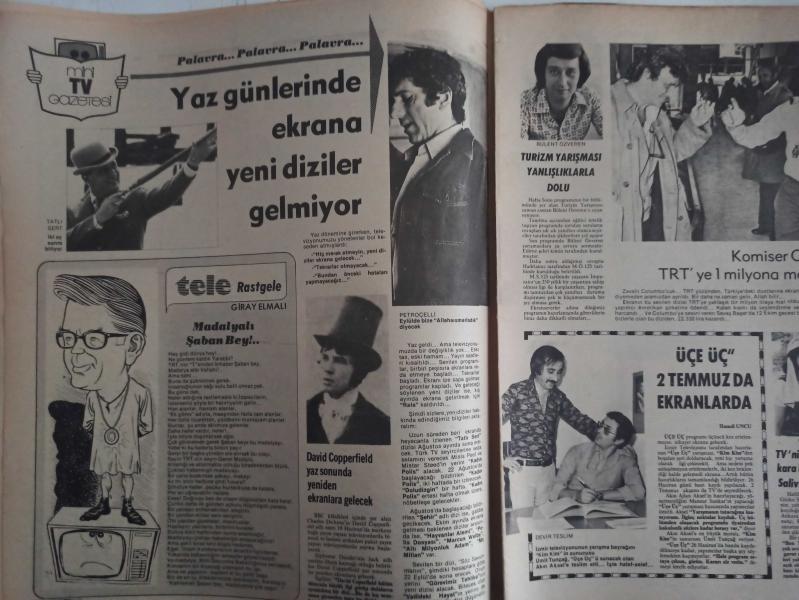 TV'de 7 Gün Haftalık Aktüalite Sinema Tiyatro Müzik ve Magazin Dergisi - 21 Haziran 1976 - Sayı:26 - Levent Kırca - Televizyon çocuklarımızın kişiliğini tehdit ediyor! - Baba Cartwright - Hikmet Feridun Es - Ekran Başı - Giray Elmalı - Yaz günlerinde ekrana yeni diziler gelmiyor - Bülent Özveren - Komiser Columbo - Hamdi Uncu - Ginko Salivo - Ekrana Bir Güzellik Kraliçesi Geliyor - Tahsin Öztin - Ülkü Aker - Salih Güney - Tam Levent Kırca'ya göre nikah! - Alpay - Fatma Girik - Tony Curtis - Nilüfer Posteri - Nöriye Kantar Film Setlerinde - Ayşe Onarır - Fatma Girik - Asu Maralman - Nilgün Bayram'ın günleri nasıl geçiyor - Siz sordunuz Fenerbahçeli Cemil anlattı - Canan Oğuz - Barış Manço'dan bir mektup var - Zafer Banu Hülya üçlüsü dağıldı - Güreşte 2 altın adam daha - Güreşte 2 Altın Adamımız Daha - Halit Kıvanç - Sezai Solelli - Dert Ortağı - Tülay feryat ediyor - Anten falı - Kaynanalar Fuarda sahneye çıkıyor - Şakir Öner Günhan - Özdemir Erdoğan - Posterli Tam Takım Dergi Yıpranma, sararmalar, kupon kesiği ve yırtılmalar zamana bağlı olarak görülebilir
