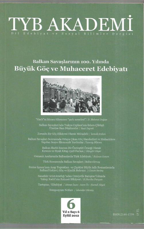 Kitap 2012 yılında TYB Vakfı tarafından [Ankara] yayınlanmıştır. 230 sayfadır. TYB Akademi - Dil Edebiyat ve Sosyal Bilimler Dergisi Sayı: 6 (Balkan Savaşlarının 100. Yılında Büyük Göç ve Muhaceret Edebiyatı ) adlı eser Türkçe dilindedir.