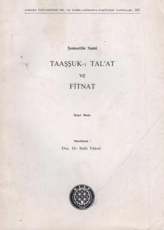 Taaşşuk-ı Tal'at ve Fitnat - 1979 Yılı İkinci Baskısı, Şemsettin Sami tarafından kaleme alınmıştır. Kitap 1979 yılında DTCF tarafından [Ankara] yayınlanmıştır. Satışta olan kitap, yayınevinin 2. baskısıdır. 106 sayfadır. Sayfa bilgisi 1. Hamur Beyaz Kağıt olarak belirtilmiştir. Taaşşuk-ı Tal'at ve Fitnat - 1979 Yılı İkinci Baskısı adlı eser Türkçe dilindedir.
