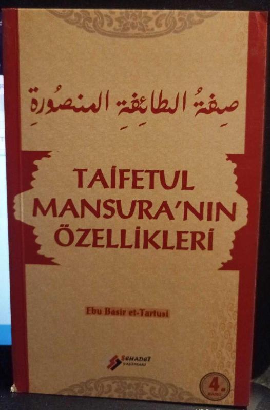 Taifetul Mansura'nın Özellikleri, Ebu Basir et-Tartusi tarafından kaleme alınmıştır. Kitap 2014 yılında Şehadet Yayınları tarafından [Konya] yayınlanmıştır. 218 sayfadır. Sayfa bilgisi 218 olarak belirtilmiştir. Taifetul Mansura'nın Özellikleri adlı eser Türkçe dilindedir.