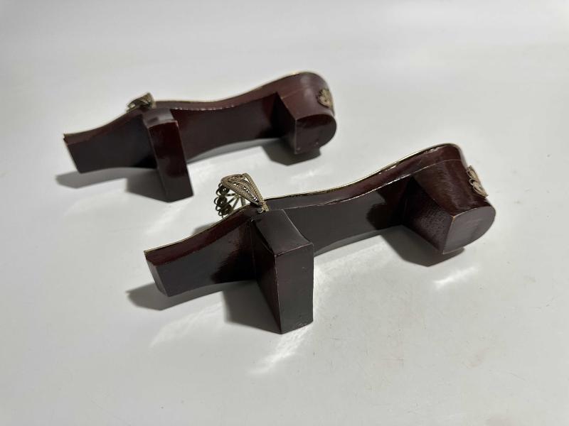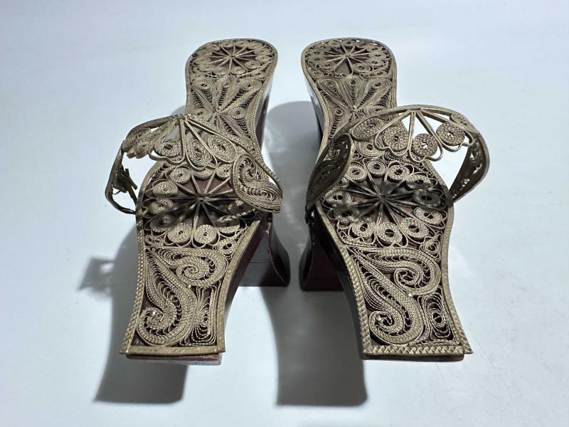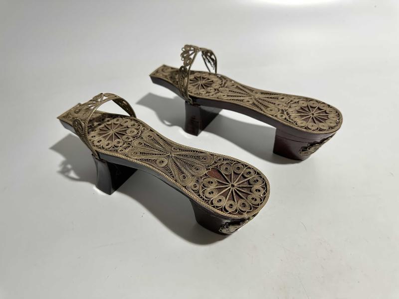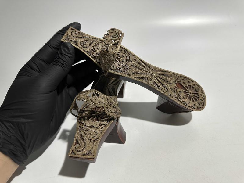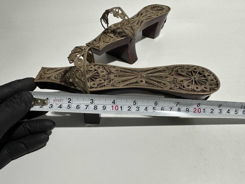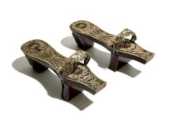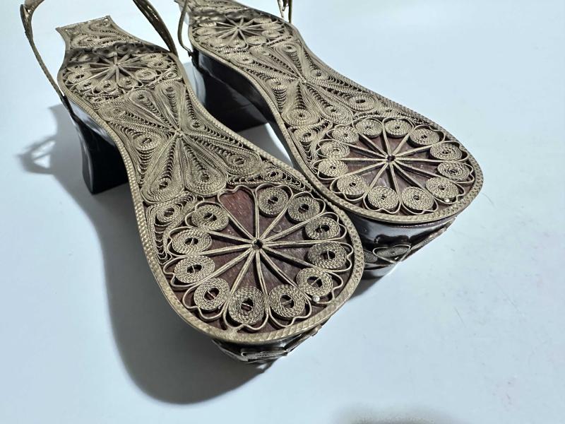 Eski ahşap üzeri metal telkari işçilik takunya Çift - Eski - Temiz - Sağlam Ölçü Sonda - iade - değişim yoktur