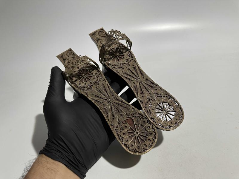 Takunya - Eskilerden Telkari İşi Ahşap Çift Takunya - BÜYÜK BOY başlıklı antika/koleksiyon objesinin menşei belirtilmemiştir. Objenin ait olduğu dönem bilinmeketedir.