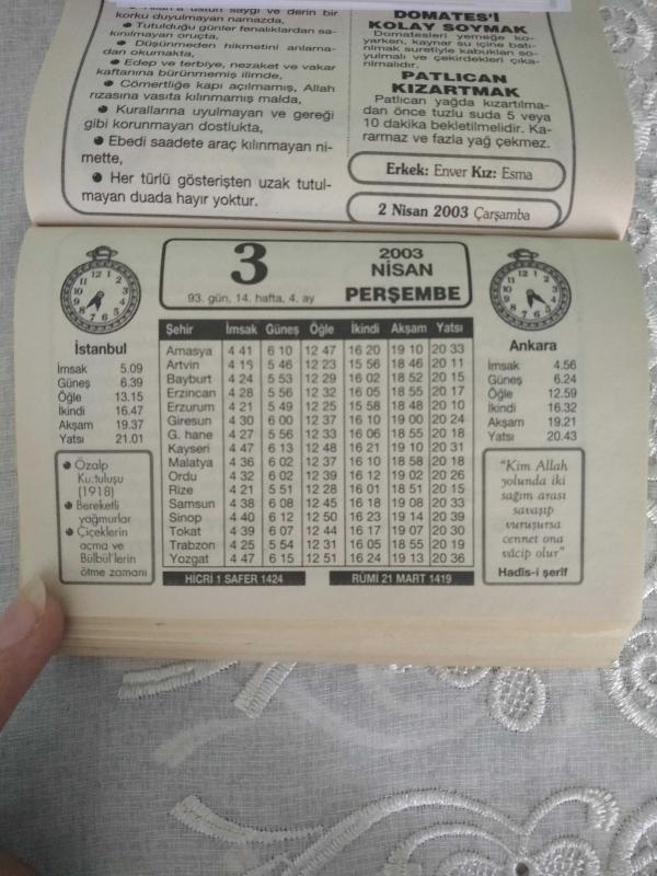 Takvim - 3 Nisan 2003 - doğum günü hediyesi hediyelik takvim yaprağı, en son 2 yıl önce güncellenmiştir.