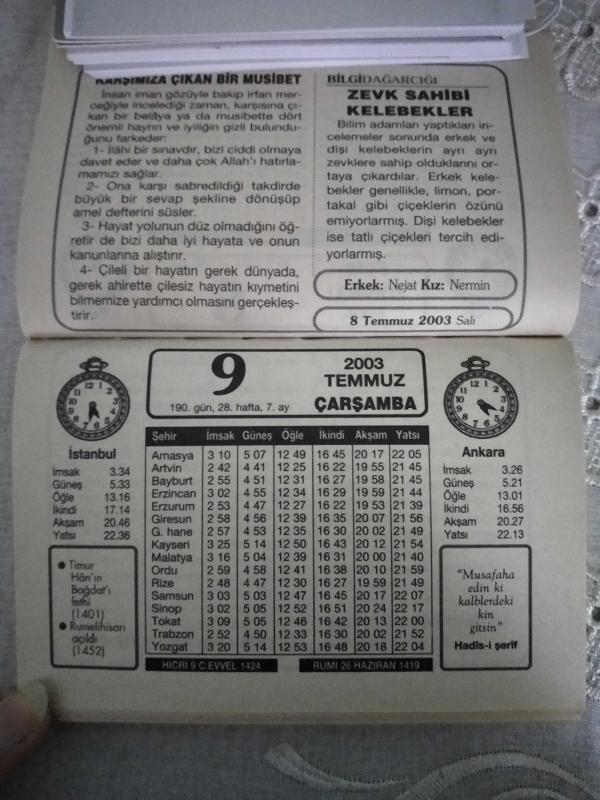 Takvim - 9 Temmuz 2003 - doğum günü hediyesi hediyelik takvim yaprağı, en son 2 yıl önce güncellenmiştir.