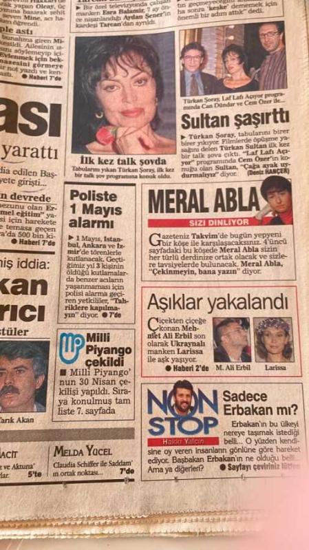 Takvim Gazetesi 1 Mayıs 1997 - Refahlılardan Müthiş İddia Tarık Akan Dolandırıcı - Türkan Şoray İlk Kez Talk Şov Programına Konuk Oldu GZ96776, en son 19 gün önce güncellenmiştir.