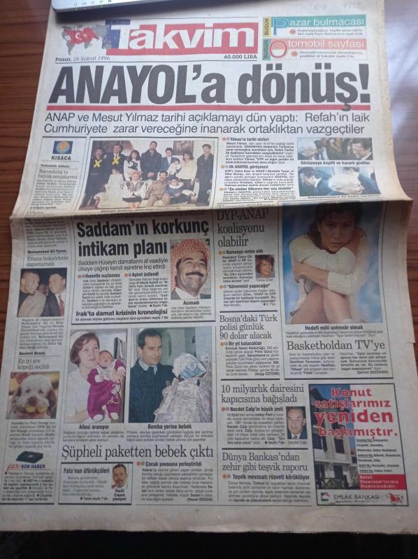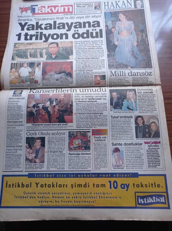 Takvim Gazetesi - 25 Şubat 1996 - Uyuşturucu Kralı Khun Sa'yı Ölü Ya Da Diri Yakalayana 1 Trilyon Ödül - Milli Dansöz Şıvga - İbo Şov - Selami Şahin - Saddam Hüseyin'in Korkunç İntikam Planı - Efsane Boksörler Muhammed Ali İle Mike Tyson'un Dayanışması - Anayol'a Dönüş - Halkçı Parti Kurucusu Necdet Calp 10 Milyarlık Dairesini Kapıcısına Bağışladı adlı eser Türkçe dilindedir.