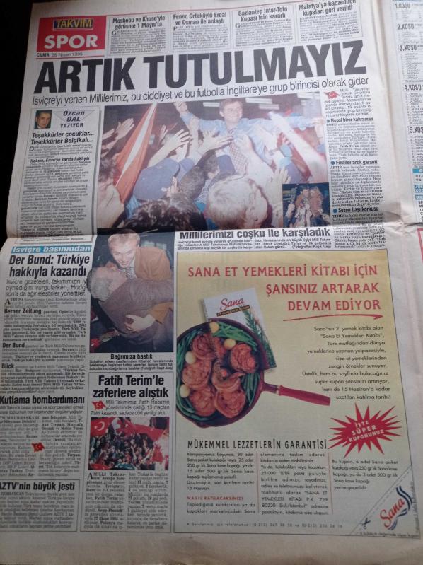 Takvim Gazetesi - 28 Nisan 1995 - Sözünü Tutan Adam Fatih Terim - İsviçre'yi Yenen A Milli Takım'a Coşkulu Karşılama - Milli Maç Bahanesiyle Otomatik Silahlı Dehşet - Zülfü Livaneli Ahmet Altan'ın İşine Son Verilmesini Vicdanım Kabul Etmiyor - Doğru Yol Partisi İçindeki Şahinler - Dışişleri Bakanı Erdal İnönü - Tansu Çiller - Atakürt İsimli Köşe Yazısı - Terörle Mücadele Yasası - Fenerbahçe Lisesi Cinayeti adlı eser Türkçe dilindedir.
