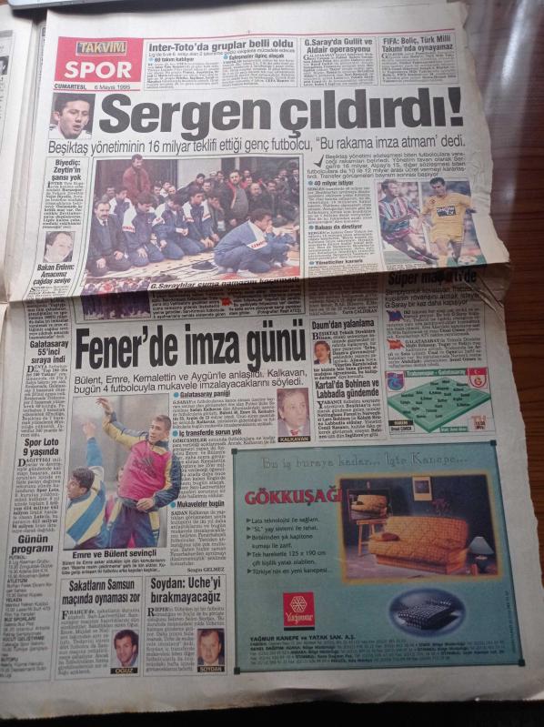 Takvim Gazetesi - 6 Mayıs 1995 - Müslüm Gürses Korsanların Peşinde - Metin Şen Yeşim Salkım Aşkı Bitti - Fenerbahçe Basketbolda Final Yolunda - Sergen Yalçın Çıldırdı - Milletvekilleri Atatürk Köşkü'nü Kendilerine Dinlenme Tesisi Yaptılar - Cumhurbaşkanı Süleyman Demirel - Vali Hayri Kozakçıoğlu - Hüsamettin Cindoruk - Dansöz Tanyeli - Yunan PKK İşbirliği Gün Gibi Ortada adlı eser, Kitap > Süreli Yayınlar > Gazeteler kategorisinde İkinci El olarak satıştadır.