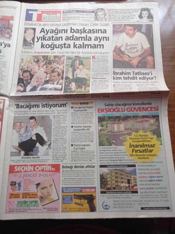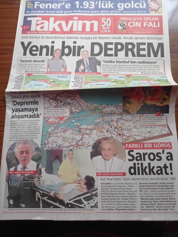 Takvim Gazetesi - 8 Temmuz 2000 - Necmettin Erbakan'la Aynı Cezaya Çarptırılan Hasan Celal Güzel Ayağına Başkasına Yıkatan Adamla Aynı Koğuşta Kalmam - İbrahim Tatlıses'i Kim Tehdit Ediyor - Erdal Acar - Deniz Akkaya - İpek Mobilyaya Güzel Açılış- İzmit Körfezi İle Saros Körfezi Arasında Mutlaka Bir Deprem Olacak - Ahmet Mete Işıkara - Şener Üşümezsoy - Nuriye Pınar Erdem - Ahmet Ercan - Kenneth Anderson Fenerbahçe'ye adlı eser Türkçe dilindedir.